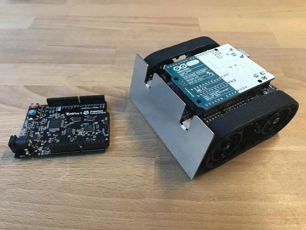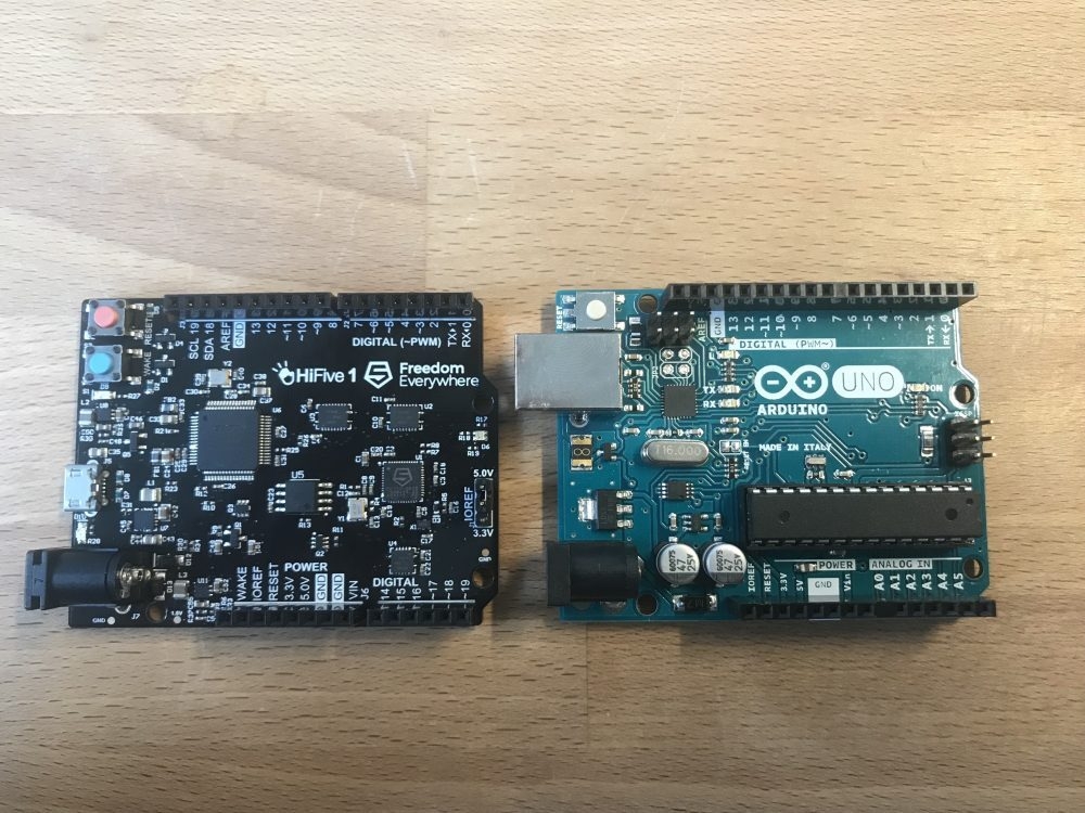 For this application I looked at targeting two different architectures, the Arduino Uno Rev 3 which has an ATmega328p on board, and a SiFive HiFive1 which has a Freedom E310 on board. These were chosen because they are pin compatible but are massively different from the software perspective. The ATmega328p is a 16 bit AVR and the Freedom E310 is a 32 bit RISC-V. The system word size isn’t even the same! The source code for the project is located here.