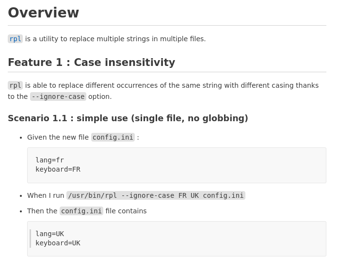 BBT stands for Black Box Tester, a command line tool that combines behavior specifications written in plain English with test automation. Let’s look at an example taken from BBT’s documentation. The following behavior specification is written in Markdown format (shown rendered below, source here):